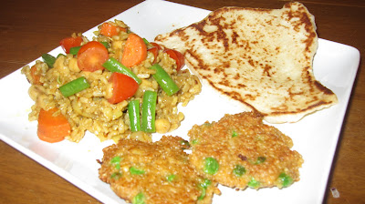 I found this recipe for the Fried Rice in a Shape Magazine. And I've made it so many times. It is so delicious. Everyone I have made it for has LOVED it. Even my husband likes it and he is not so big on Indian food. He is getting more familiar with it and enjoys it a lot more than the first time he tried it. And for the Naan well lets just say its to die for. MMMmmmmm. I got the recipe off of allrecipes.com a while back and have made it several times. Me and Jake enjoy them very much. If you like Indian food this fried rice is definitely a recipe not to miss. Here it is: